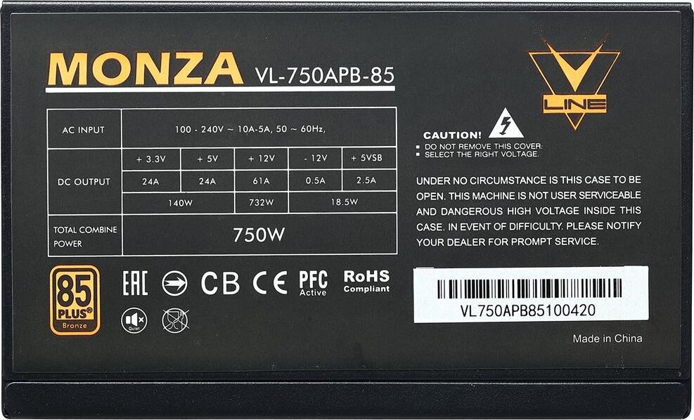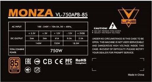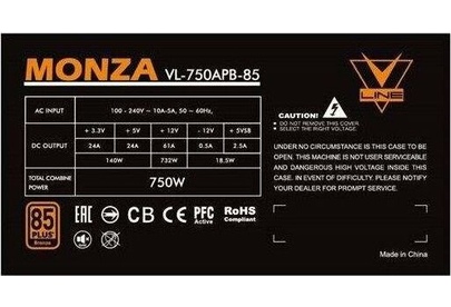 FORMULA Блок питания ATX 750W MONZA VL-750APB-85 80+ bronze (20+4pin) APFC 120mm fan 7xSATA RTL
