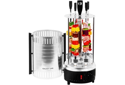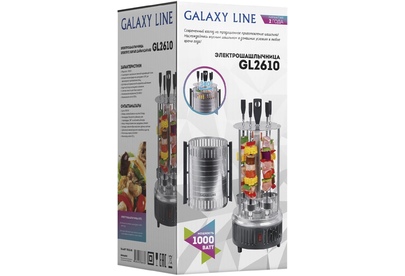 GALAXY GL 2610 Мощность 1000 Вт. 5 шампуров из высококачественной нержавеющей стали. Автоматическое вращение шампуров на 360° для равномерного приготовления блюд. Долговечный керамический нагревательный элемент. Защитный кожух из пищевого алюминия. Съемные емкости для сбора жидкости. Напряжение сети 220-240 В. Частота 50 Гц.