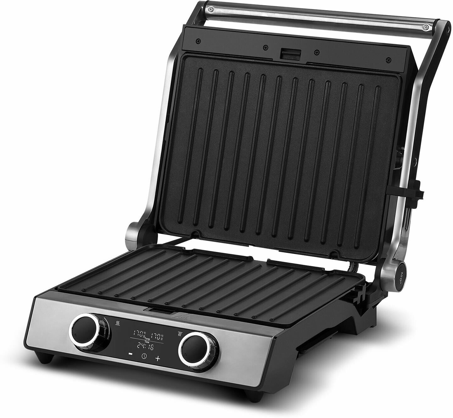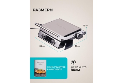 Тип управления: механическое. Установка времени приготовления: есть. Ширина рабочей поверхности: 30. Длина рабочей поверхности: 23. Антипригарное покрытие нагревательных частей: есть. Съемные формы: есть. Формы для готовки: панели для гриля. Установка температуры приготовления: есть. Информационный дисплей: есть. Лоток для сбора жира: есть. Индикатор включения: есть. Индикатор нагрева: есть. Автоматическое отключение (защитное): есть. Ненагревающаяся ручка: есть. Вес товара: 4.7. Раздельная регулировка температуры для пластин: есть. Раскрытие на 180 градусов: есть. Длина электрокабеля: 0.8. Габариты упаковки (ед) ДхШхВ: 0.4x0.195x0.385. Вес упаковки (ед): 5.7. Гарантия: 24 мес.. Цвет: серебристый. Размеры (ШхВхГ): 34.7 х 16 х 33.5см. Мощность: 2200 Вт. Температура: 160 - 210 °С. Особенности: раскрытие на 180 градусов, лоток для сбора жира. Мощность: 2200 Вт. Управление: механическое. Температура: 160 - 210 °С