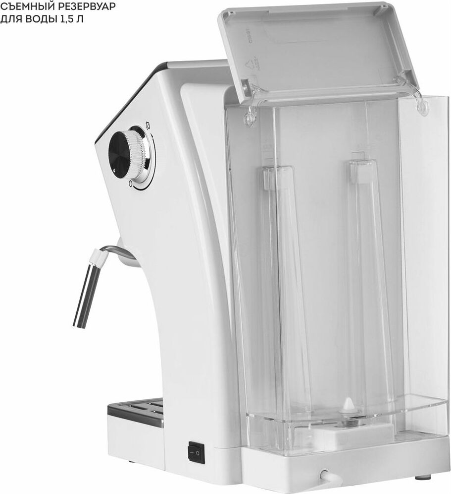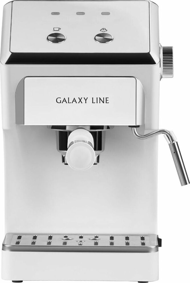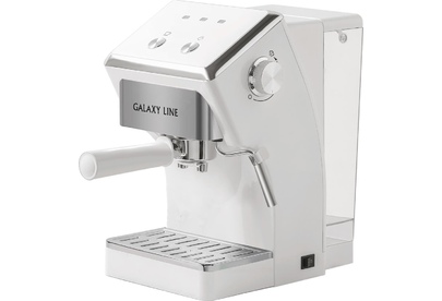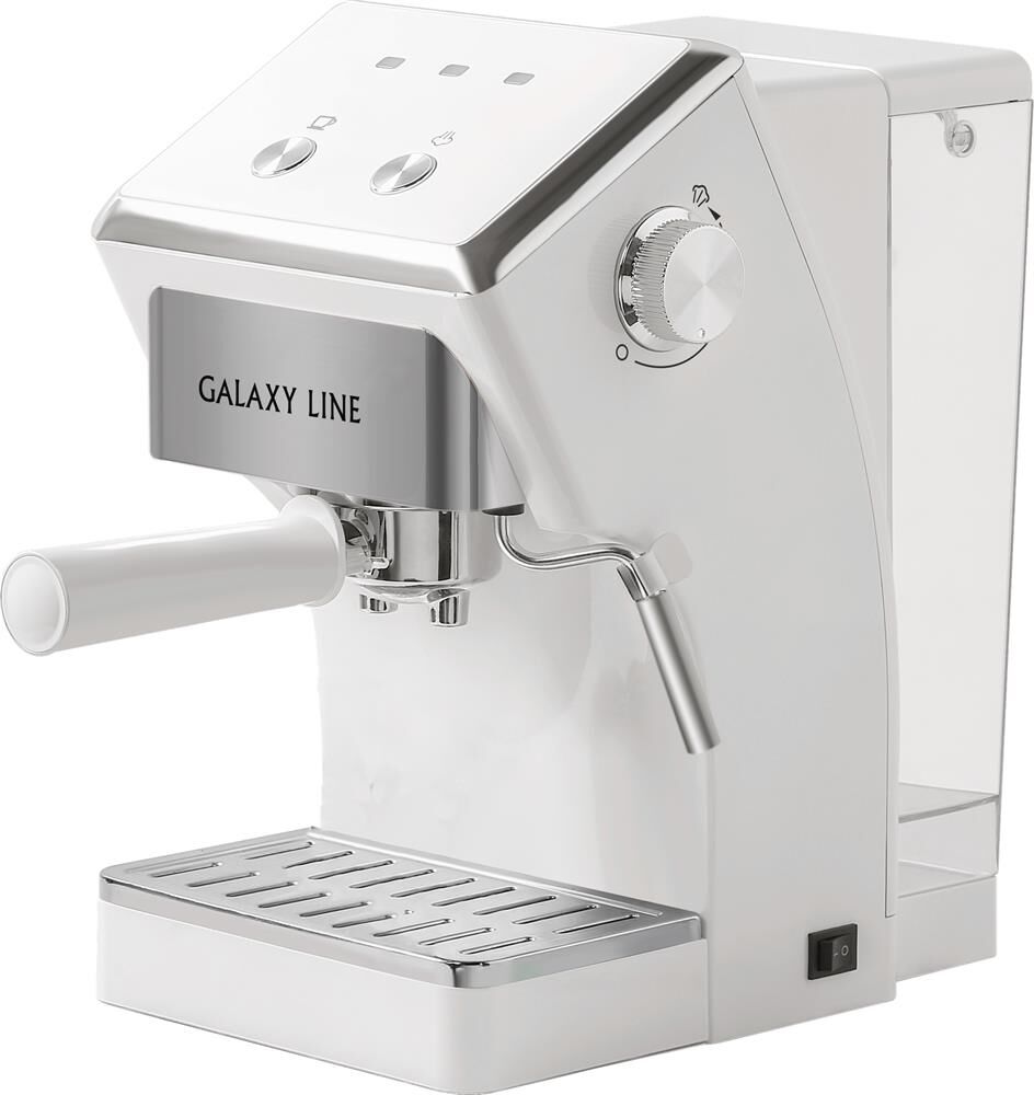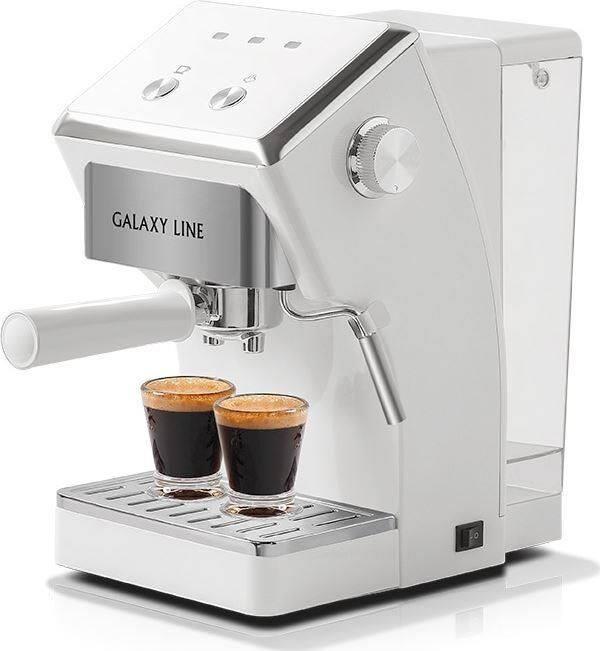Galaxy LINE GL 0756 БЕЛАЯ Кофеварка электрическая 1500 вт, 20 бар, съемный резервуар для воды 1,5 л, съемный контейнер для кофе из нержавеющей стали, автоотключение, регулятор интенсивности подачи пара, капучинатор, 2 шт. фильтр из нержавеющей стали, 1 шт. мерная ложка,220-240 в, 50 гц,