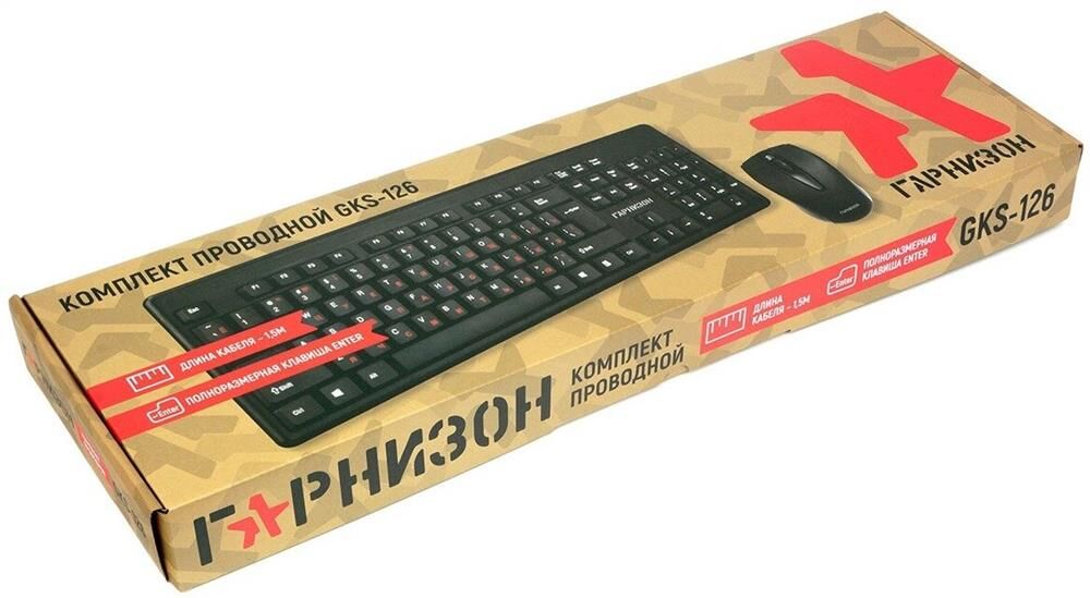 Комплект клавиатура и мышь Гарнизон Комплект кл-ра+мышь пров. Гарнизон GKS-126 черный, 104кл, 3кн, 1000DPI, кабель клав 1.5м, мышь 1,3м