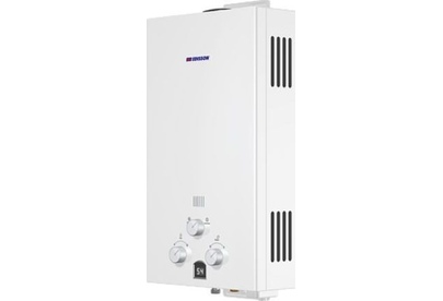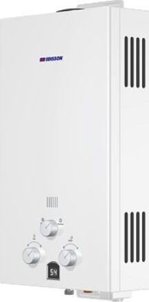 Проточный газовый водонагреватель Edisson E 20 D, белый, Полезная мощность 20 кВт, Тип камеры сгорания открытый, Максимальная температура воды 50 °С, Размеры (ШxВxГ) 340x590x140 мм, Установка вертикальная на стену с нижней подводкой (1/2), Управление механическое, Системы защиты газ-контроль, от перегрева, Индикация включения, Дополнительная информация: мин. давление воды: 0.25 атм; макс. давление воды: 8 атм; ограничение температуры нагрева; материал теплообменника: медь; тип розжига: электроподжиг; автоматическое поддержание температуры воды на выходе; диаметр дымохода: 110 мм