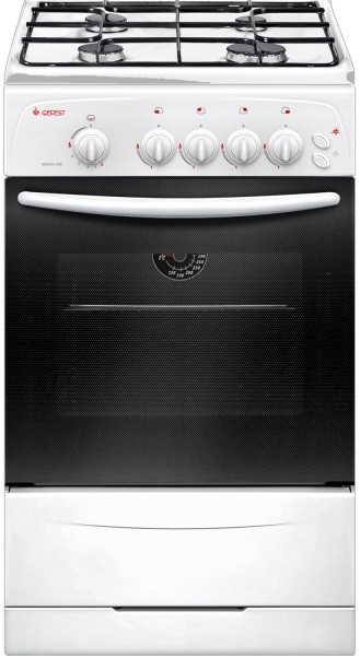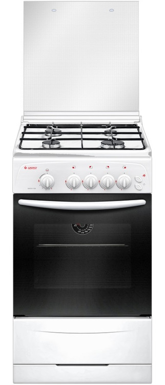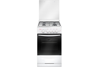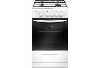 Белая газовая плита шириной 50 см. Современный дизайн, с элементами декора, дополнен стеклянной защитной крышкой рабочей поверхности. Четыре конфорки, от экономичной до мощной, оборудованы электроподжигом - осуществляется нажатием кнопки на панели управления. Духовка имеет внутреннее освещение, нижняя горелка оснащена газ-контролем, для контроля нагрева используется термоуказатель, вынесенный на стекло дверцы.