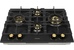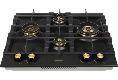 Латунные энергоэффективные конфорки; электроподжиг; ГАЗ-контроль, решетка: чугунная; 2хWOK, WOK-конфорка c разделяемым пламенем; цвет поверхности: матовый черный; цвет ручек: черный+бронза; Ширина (см) 58,4; Глубина (см) 51;