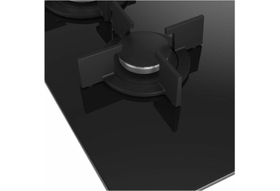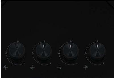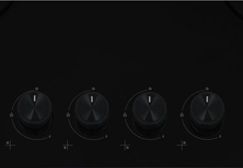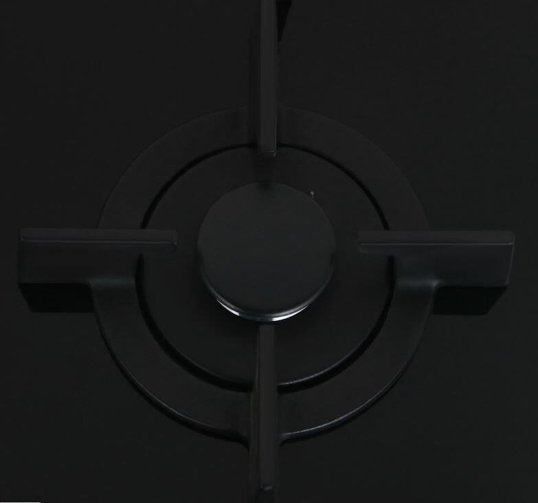 Газовая варочная поверхность (газ на стекле) 4 зоны, автоподжиг, газ-контроль, чугунные держатели для посуды, цвет: черный