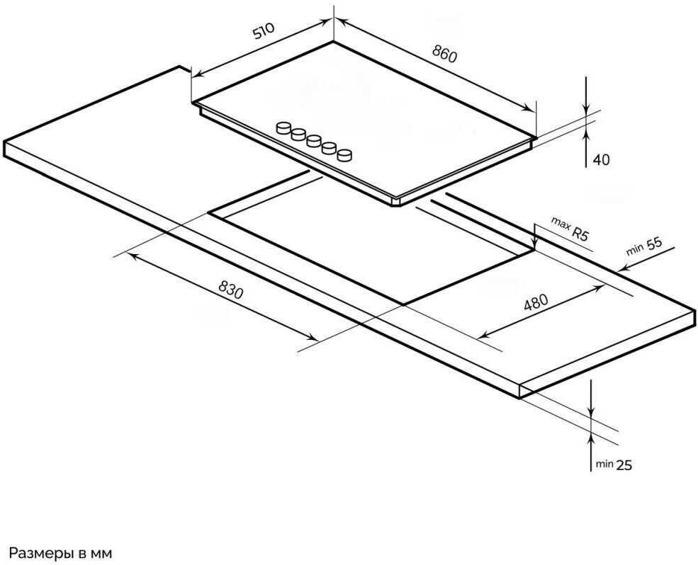 Газовая варочная панель LEX Газовая варочная поверхность GVG 954 BBL черный