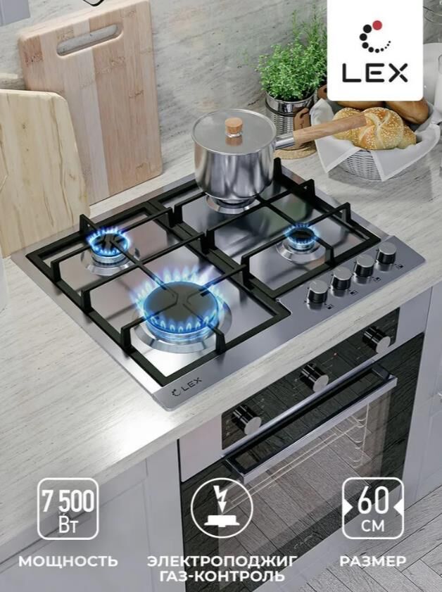 Газовая варочная панель LEX Газовая варочная поверхность GVS 642-1 IX нержавеющая сталь