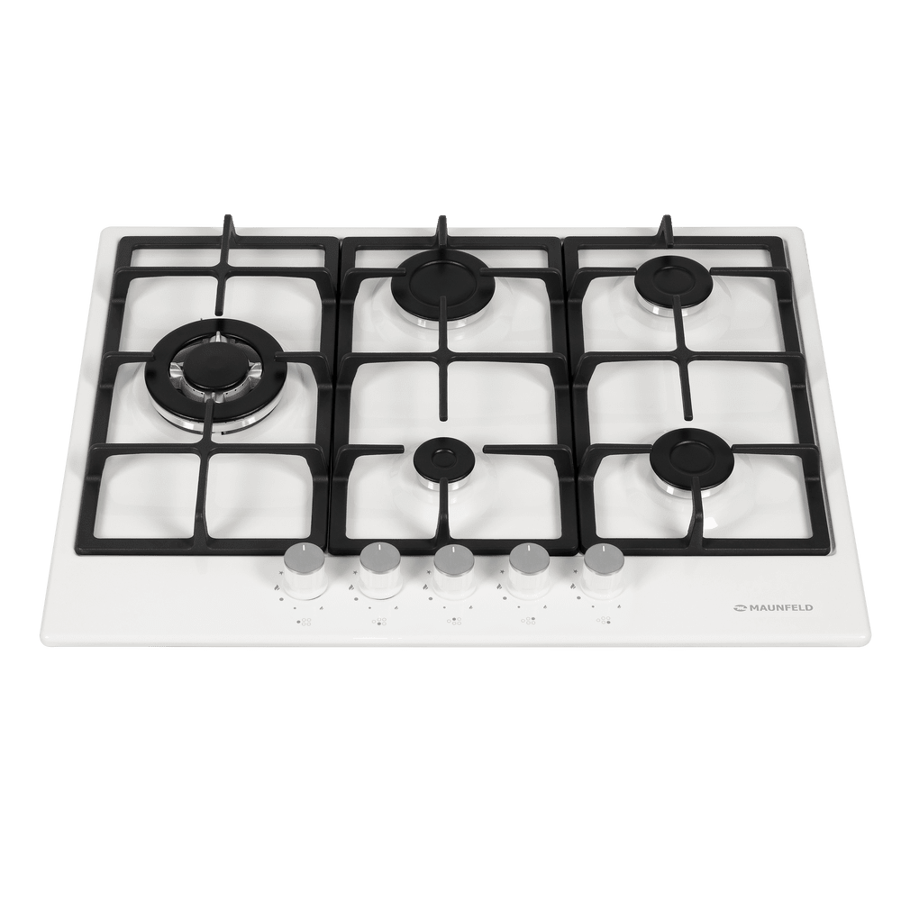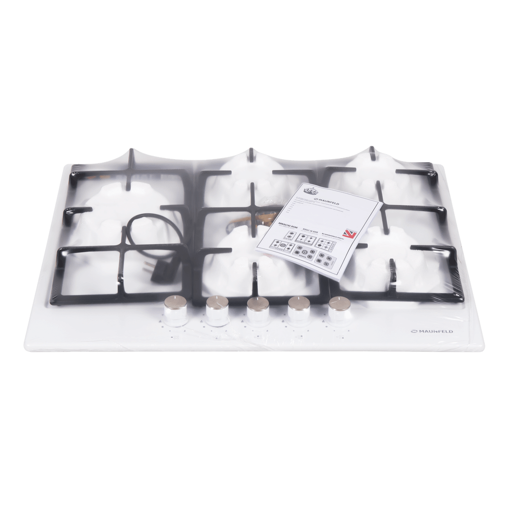 Maunfeld EGHE.75.33CW/G — это пятиконфорочная газовая варочная панель шириной 70 см. Управление механическое, осуществляется при помощи цельнометаллических поворотных ручек серебристого цвета. Решётки чугунные. Функция газ-контроля обеспечивает безопасную эксплуатацию. Ключевые преимущества: Чугунные решётки WOK-горелка Электроподжиг