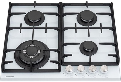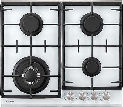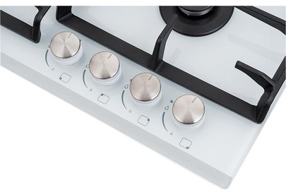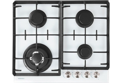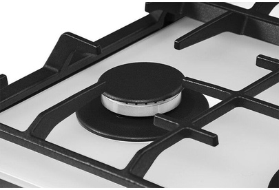 ШхГхВ: 58,4х51х10 см; электроподжиг; решетка: чугунная; WOK конфорка; цвет поверхности: белое закаленное стекло; цвет ручек: серебристые