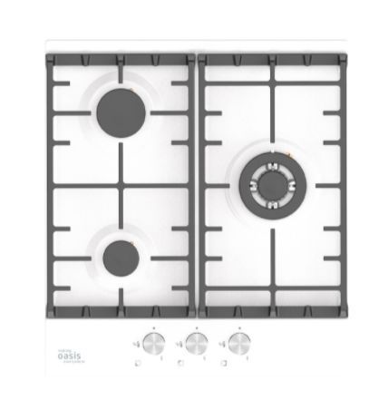 Размеры 46х52х9,7Металл, белый, чугунная решетка, автоматический розжиг, газ-контроль, 3 газовые конфорки, WOK-конфорка, ширина варочной поверхности 45см, Турция