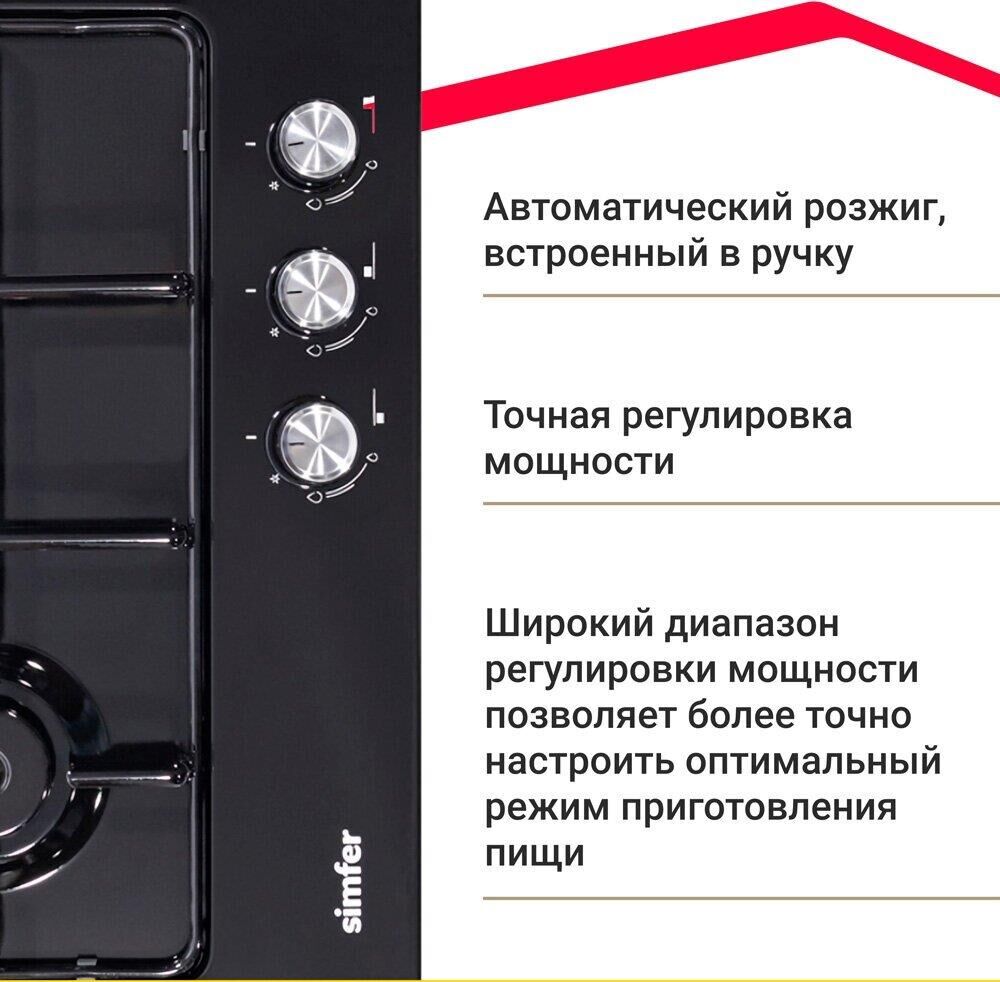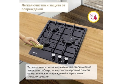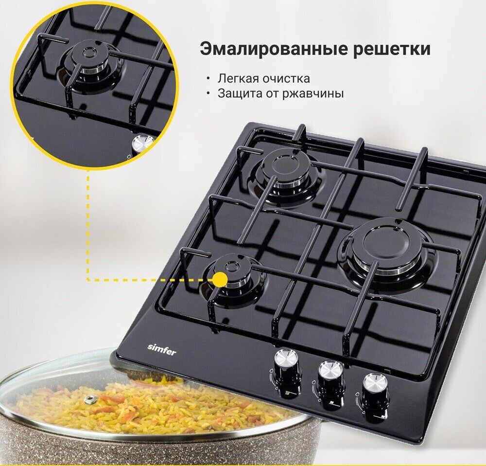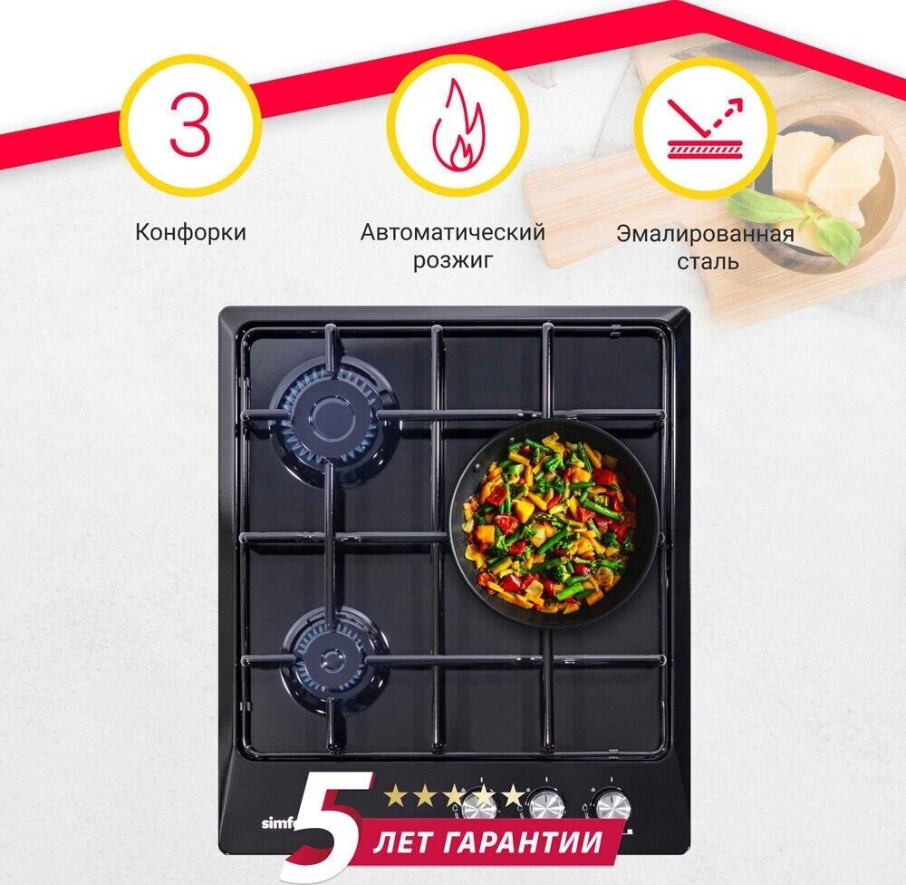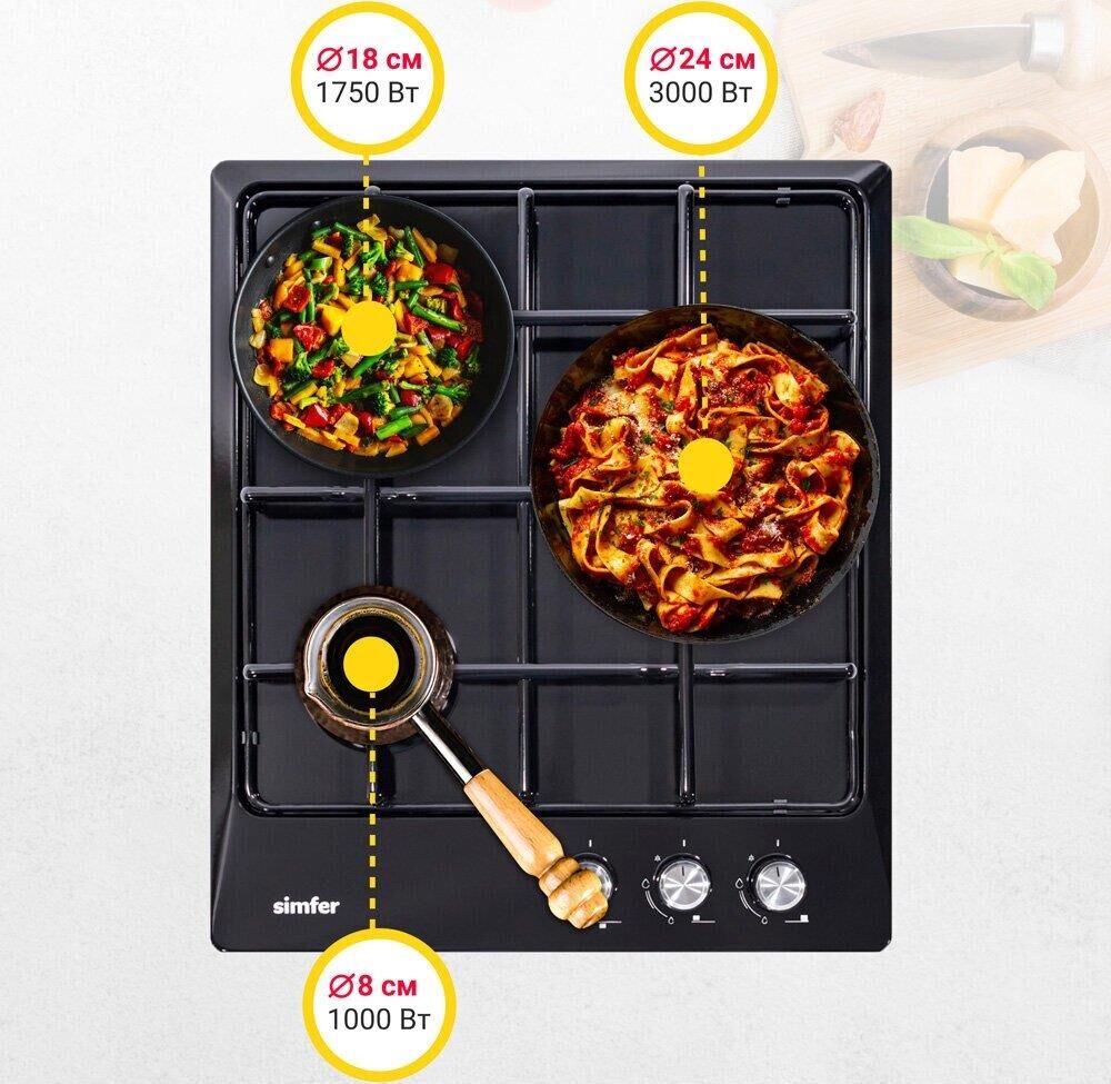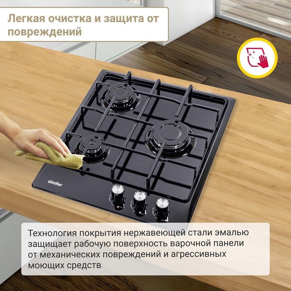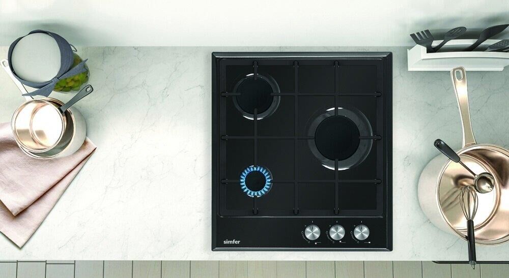 Газовая варочная панель Simfer H45V30B400 - модель, которая благодаря своим компактным размерам органично впишется в интерьер вашей кухни и сделает ежедневный процесс приготовления еды комфортным. В качестве материала для изготовления варочной поверхности использовалась эмалированная сталь, которая в разы упрощает утомительный процесс ухода за ней и делает процесс очистки лёгким и удобным. На ней располагаются три конфорки - разные по диаметру и мощности пламени в них.