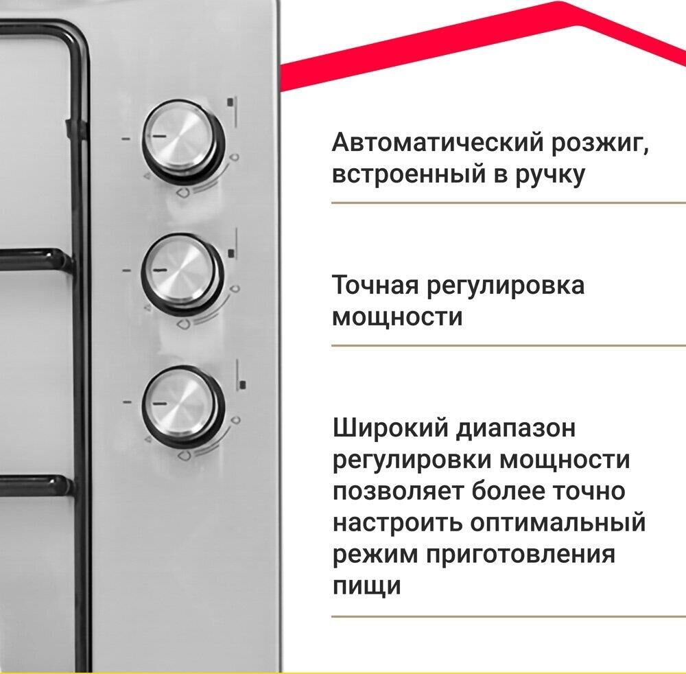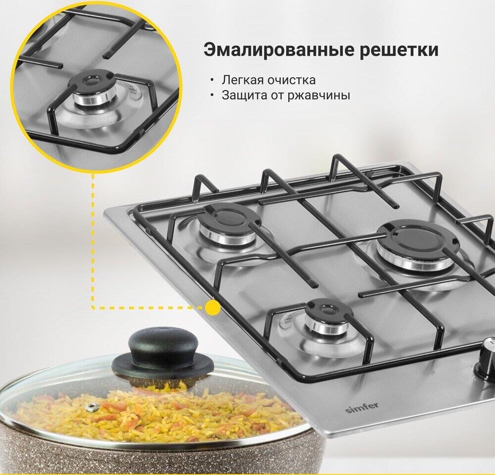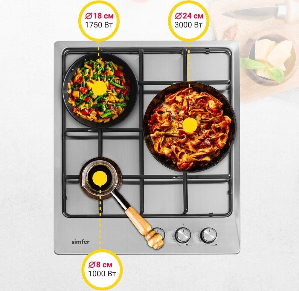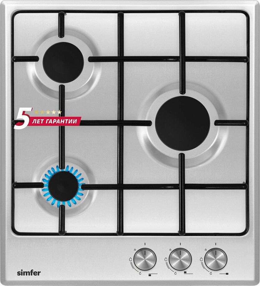 Газовая варочная панель Simfer H45V30M420 - модель, которая благодаря своим компактным размерам органично впишется в интерьер вашей кухни и сделает ежедневный процесс приготовления еды комфортным. Рабочая поверхность выполнена из прочного и долговечного материала. На ней располагаются четыре конфорки - разные по диаметру и мощности пламени в них. А значит вы сможете выбрать оптимальную конфорку для приготовления разнообразных блюд.