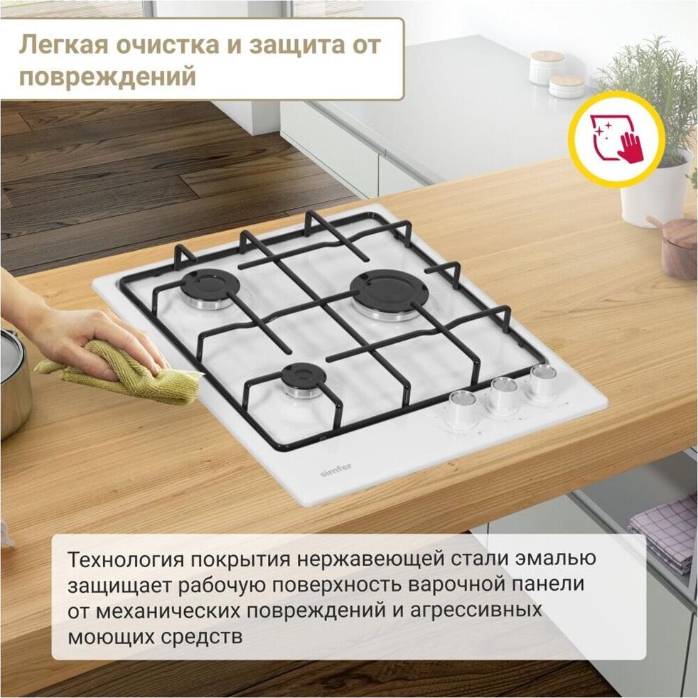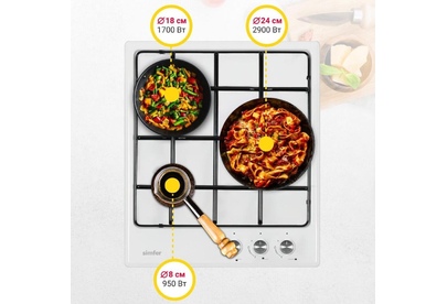 Газовая варочная панель Simfer H45V30W411 - модель, которая благодаря своим компактным размерам органично впишется в интерьер вашей кухни и сделает ежедневный процесс приготовления еды комфортным. Рабочая поверхность выполнена из нержавеющей стали – прочного и долговечного материала. На ней располагаются три конфорки - разные по диаметру и мощности пламени в них. А значит вы сможете выбрать оптимальную конфорку для приготовления разнообразных блюд.