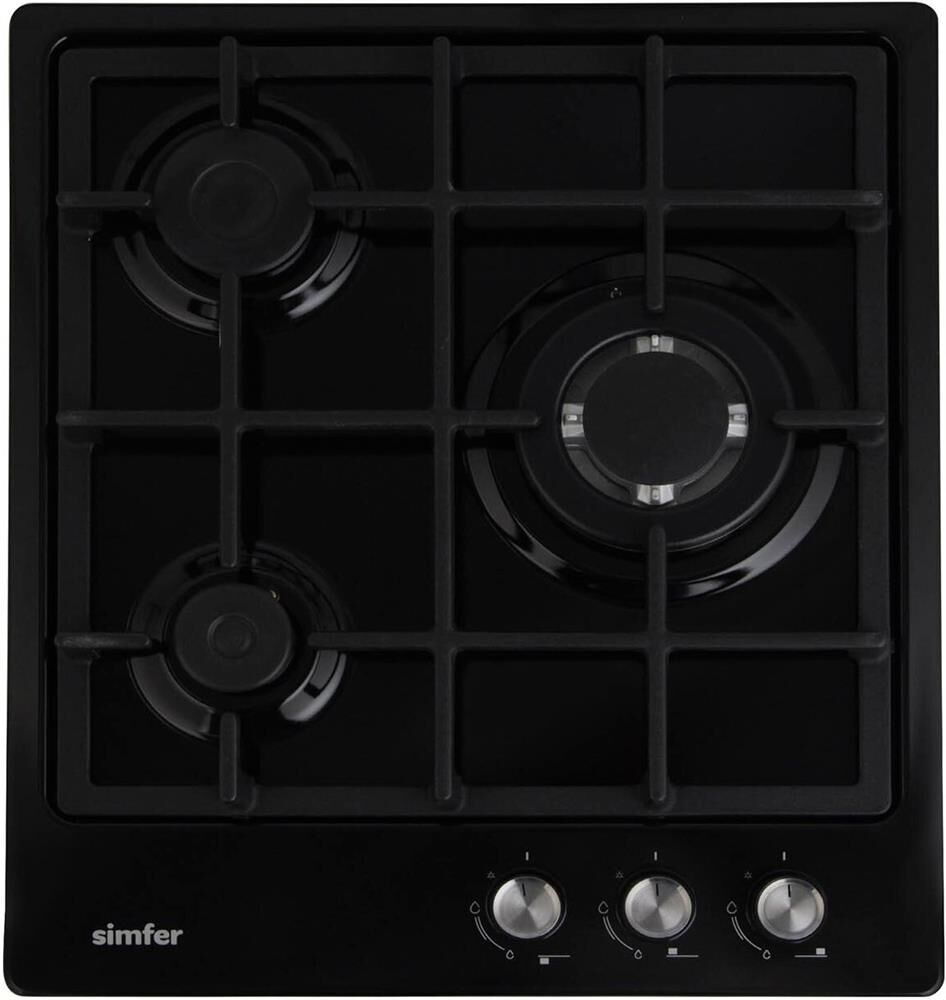 Simfer H45V35B555 – встраиваемая газовая панель шириной всего 44 см. Это удачное решение для малогабаритной кухни. Лаконичный дизайн сделает устройство органичным дополнением любого классического интерьера. продуманные детали В этой модели – три конфорки, расположенные так, что даже при использовании сразу всех посуда не будет соприкасаться бортами. В передней части находится самая маленькая, на которую удобно ставить турку или маленький ковшик, чтобы не тянуться через всё рабочее пространство.