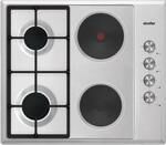 Общие данные: Габариты: -х59х52 см Габариты ниши для встраивания: -х56х49 см Рабочая поверхность: нержавеющая сталь Количество конфорок: 2 газовые + 2 традиционные электрические Мощность: 1 х конфорка повышенной мощности 3000 Вт. 1 х стандартная конфорка 1750 Вт. 1 x электрическая конфорка 1000 Вт. 1 х электрическая конфорка 2000 Вт. Автоматический розжиг Газ контроль Управление и функции: Фронтальная панель управления Дополнительная информация: Составные эмалированные решётки Жиклёры для баллонного газа