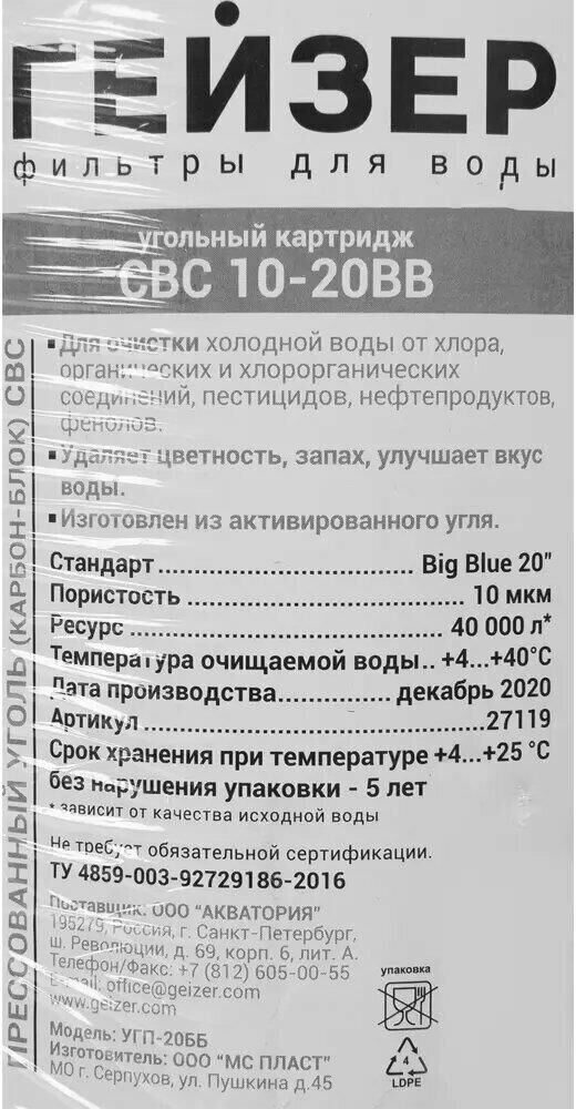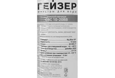 ГЕЙЗЕР Картридж CBC10-20BB, 1шт [27119]