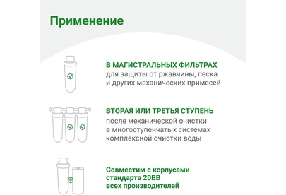 Назначение для проточных фильтров Ресурс 40000 л Количество в комплекте 1 шт Вес упаковки (ед) 0.8 кг