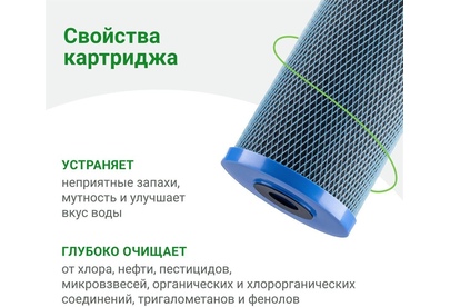 Назначение для проточных фильтров Ресурс 800 л Количество в комплекте 1 шт Совместимость для стандарта корпуса Big Blue 20" Для хлорированной воды да Бактерицидный да Габариты упаковки (ед) ДхШхВ 0.1x0.1x0.1 м Вес упаковки (ед) 0.9 кг