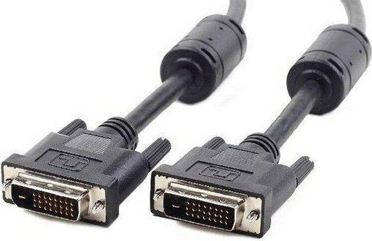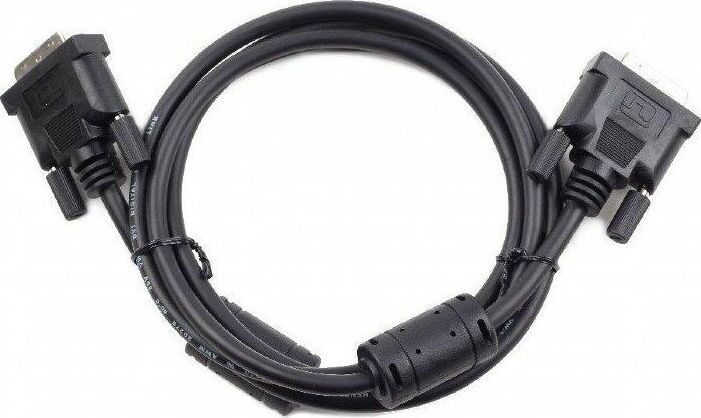 Кабель DVI-D - DVI-D, 25М/25М, 1.8 м, фер, экр, Cablexpert, CC-DVI2-BK-6 Кабель для соединения источника видеосигнала (видеоадаптер и др.) с устройством вывода изображения (монитор, проектор и др.) с интерфейсом DVI-D dual link. Kомпактная упаковка. Разъемы на кабеле: два 25-контактных DVI-D, длинные винты. Двойная экранировка для снижения помех, два ферритовых кольца. Длина - 1.8 метров.