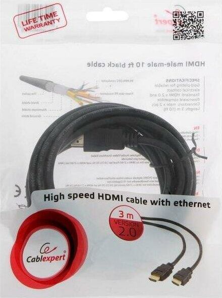 Кабель HDMI-HDМI 19М-19М V2.0 Cablexpert CC-HDMI4-10, предназначен для коммутации DVD плееров, имеющих современный цифровой выход HDMI, Bluray плееров, спутниковых ресиверов, плееров HD с жестким диском, многофункциональных или игровых телеприставок и компьютеров с современными ЖК и плазменными панелями, телевизорами HDTV или HD. HDMI интерфейс версии 2.0 позволяет передавать через кабель цифровые видеоданные высокого разрешения, а также многоканальный цифровой аудио-сигнал Dolby HD, Dolby True HD, Master