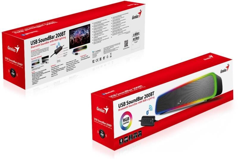 GENIUS Саундбар USB Soundbar 200 BT /4 Вт/120-20000 Гц/Bluetooth 5.1/3.5 мм/регулировка громкости/RG