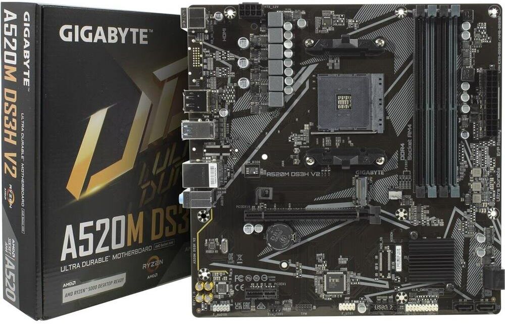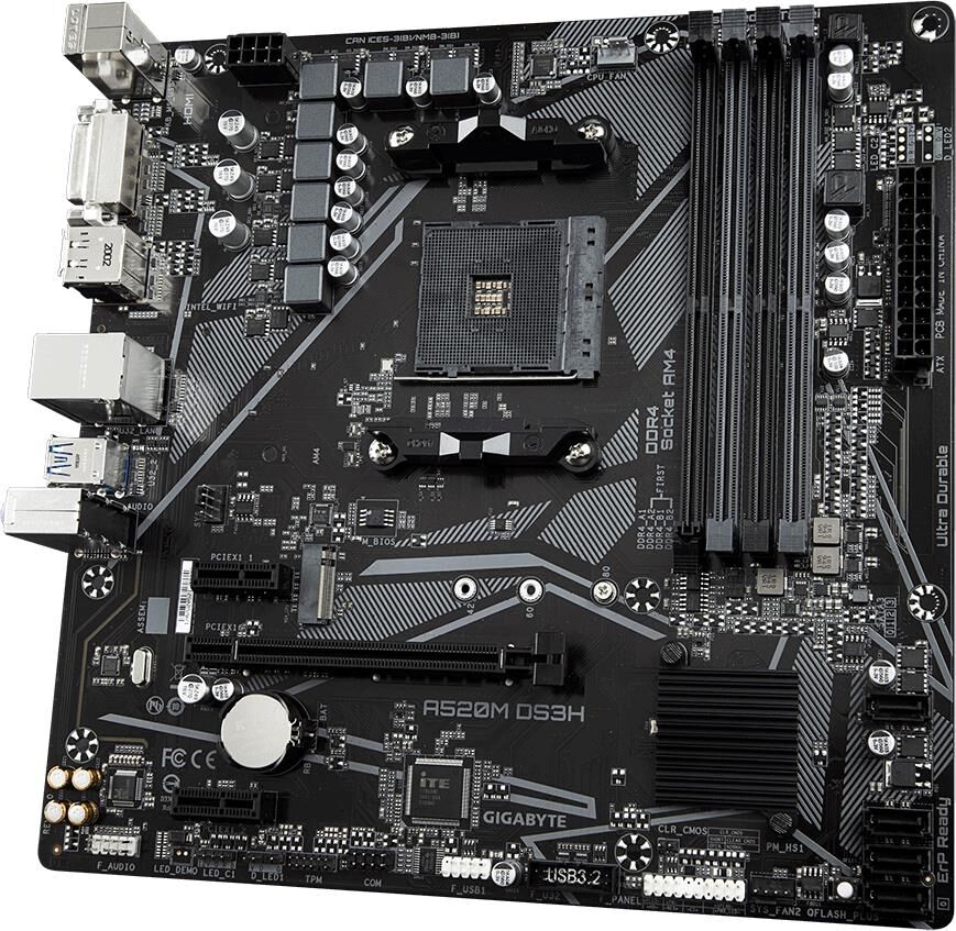 GIGABYTE Материнская плата A520M DS3H AC Soc-AM4 AMD A520 4xDDR4 mATX AC`97 8ch(7.1) GbLAN RAID+HDMI