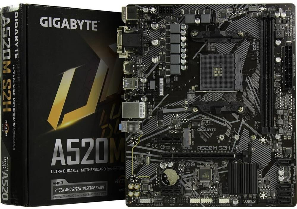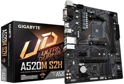 GIGABYTE Материнская плата A520M S2H Soc-AM4 AMD A520 2xDDR4 mATX AC`97 8ch(7.1) GbLAN RAID+VGA+DVI+