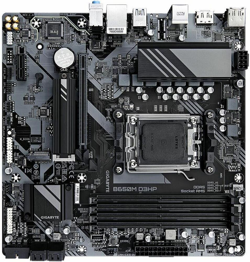 GIGABYTE Материнская плата B650M D3HP AX Socket AM5 AMD B650 4xDDR5 mATX AC`97 8ch(7.1) 2.5Gg RAID+H