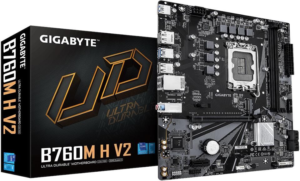 **Материнская плата Gigabyte B760M H V2, RTL — надёжность и производительность для вашего ПК!** Ищете материнскую плату, которая обеспечит стабильную работу вашего компьютера и позволит раскрыть весь потенциал комплектующих? Gigabyte B760M H V2 — отличный выбор для сборки современного ПК! **Почему стоит выбрать материнскую плату Gigabyte B760M H V2?** * **Совместимость с современными процессорами:** плата поддерживает актуальные процессоры, что позволяет создать производительную систему. * **Надёжность и качество:** продукция Gigabyte известна своим высоким качеством и надёжностью. Вы можете быть уверены в стабильной работе вашего ПК. * **Богатый набор разъёмов и интерфейсов:** плата предоставляет множество возможностей для подключения различных устройств и комплектующих, что делает её универсальной для разных конфигураций ПК. * **Оптимальное соотношение цены и качества:** Gigabyte B760M H V2 предлагает широкий набор функций по доступной цене. С материнской платой Gigabyte B760M H V2 вы сможете создать мощный