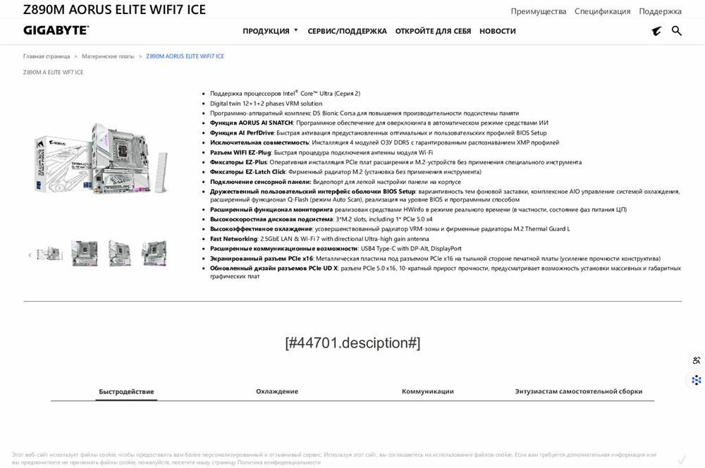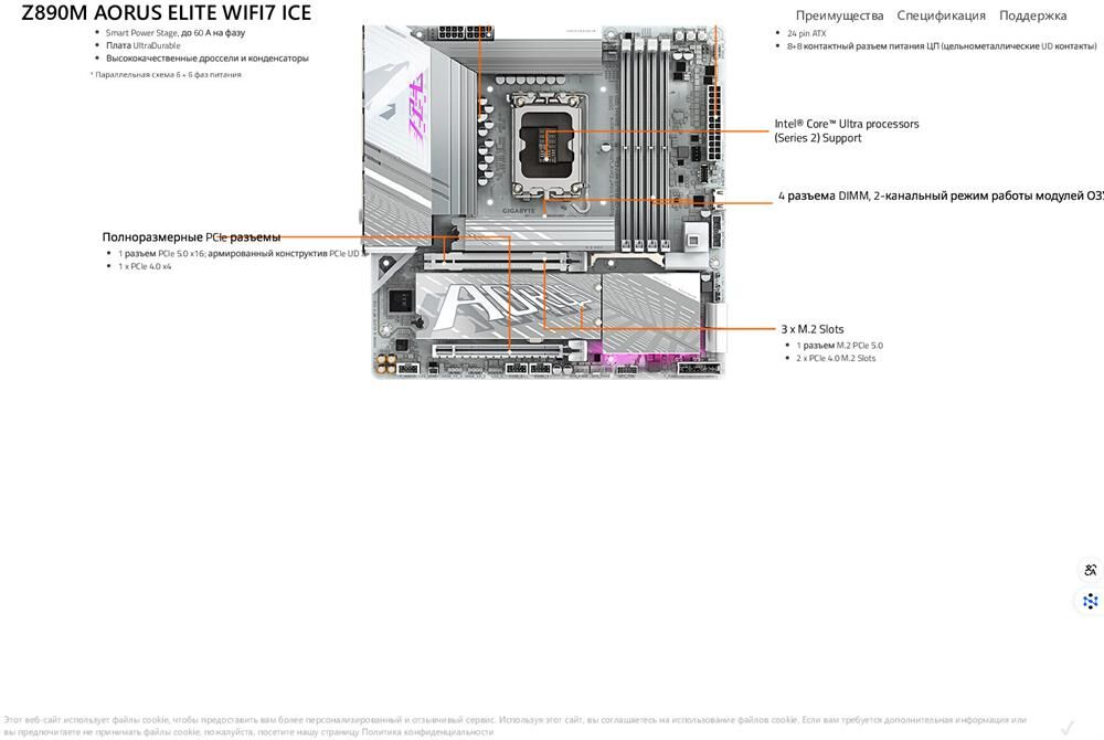GIGABYTE Материнская плата Z890M AORUS ELITE WIFI7 ICE, Socket LGA 1851, Intel Z890, mATX, Ret