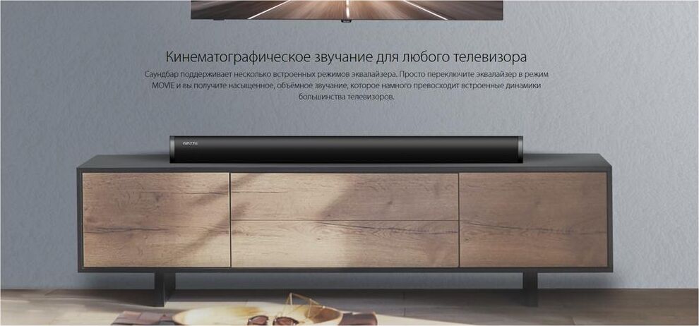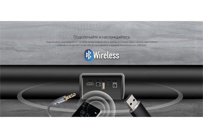 встроенный эквалайзер (Music, Movie, Dialog), режимы MUTE, STANDBY, вход – HDMI, Optical, Line in 3.5 мм, встроенный аудио-плеер – USB-flash, динамик – 2 х 10 Вт / 4 Ом, напряжение питания – 220-240В / 50 Гц
