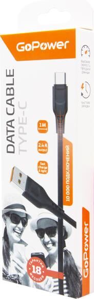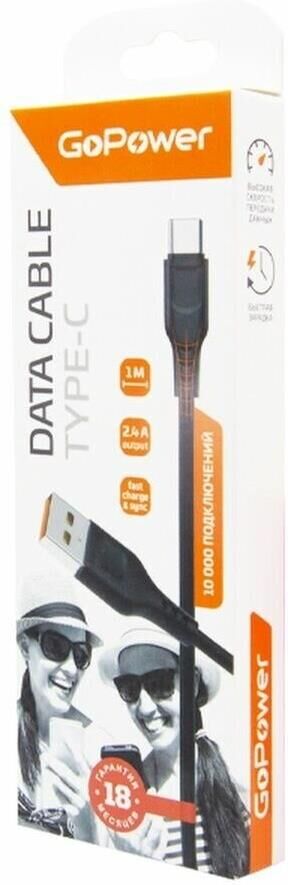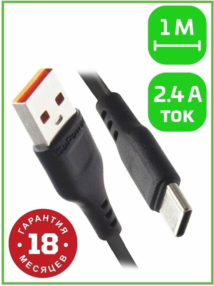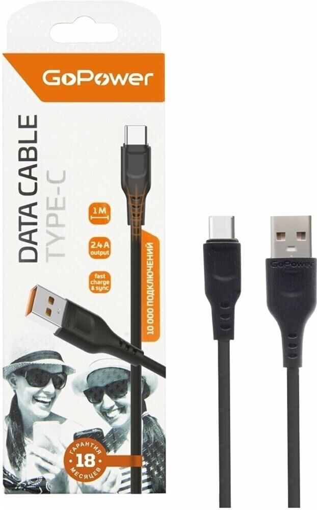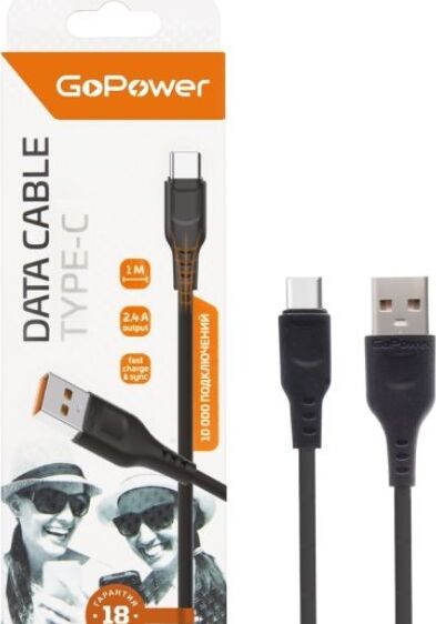 GOPOWER (00-00018566) Кабель GP01T USB (m)-Type-C (m) 1.0м 2.4A черный