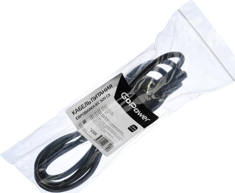 GOPOWER (00-00024056) кабель питания евровилка CEE 7/7-IEC 320 C5 1.8м ПВХ 0.75мм черный (1/10/160)