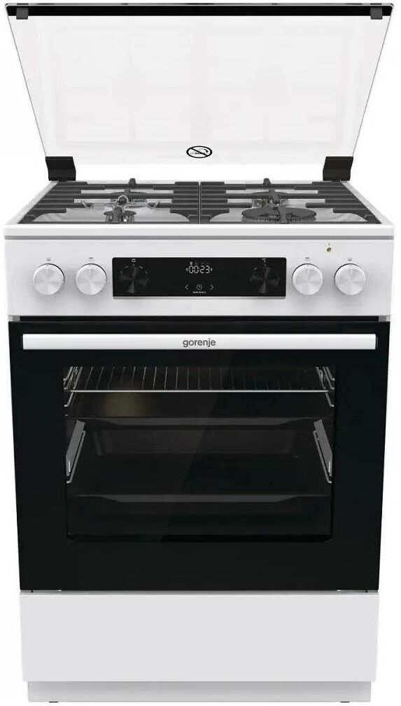 GORENJE Газовая плита GKS6C70WA, электрическая духовка, стеклянная крышка, чугун, белый