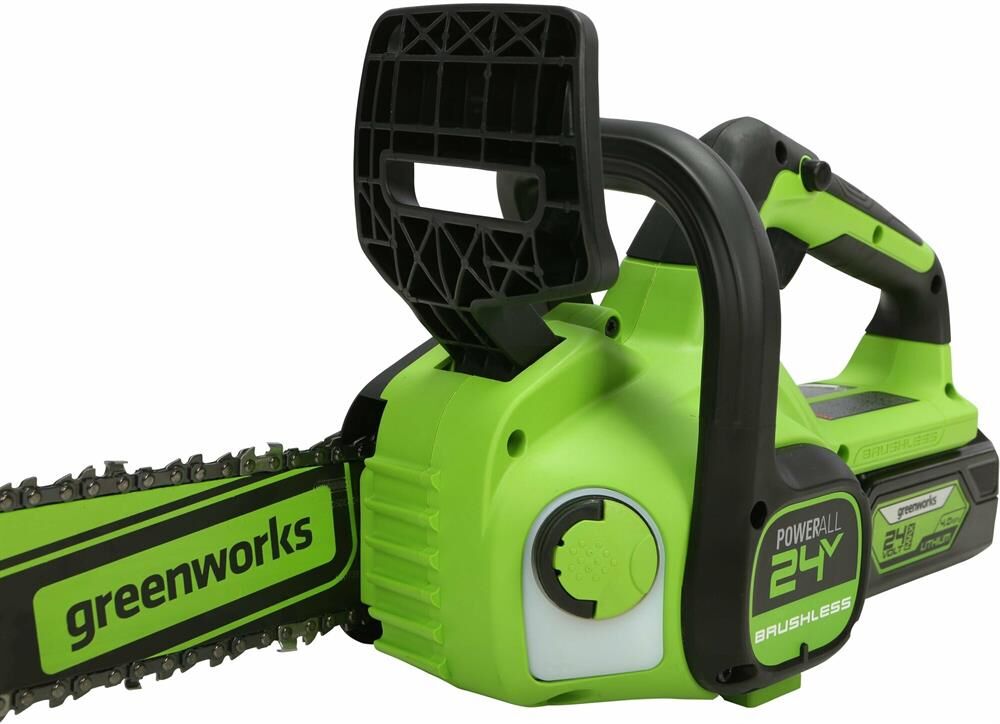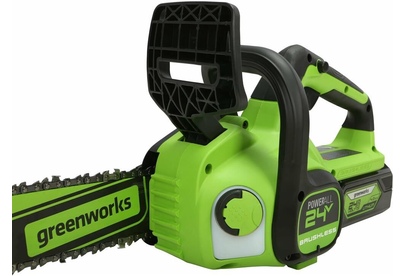 Цепная аккумуляторная пила Greenworks Арт. 2007007, 24V - небольшая, легкая (всего 2,6 кг) садовая пила. Благодаря ее компактным размерам она легко помещается в багажнике автомобиля или даже в рюкзаке. Это отличный выбор для подрезки толстого кустарника или сучков, пиления бревен. Пила также подойдет рыбакам, охотникам и любителям походов. Пила отличается небольшим весом, низким уровнем шума и вибраций, абсолютной экологичностью и простотой эксплуатации.