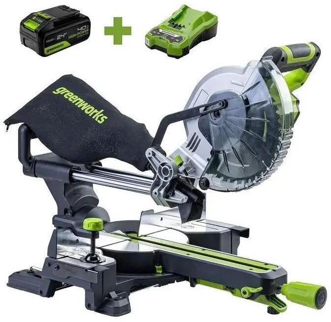 GREENWORKS Торцовочная пила GD24MS216, аккамуляторная, комбинированная, с 1 АКБ, с З/У, 216мм [15017