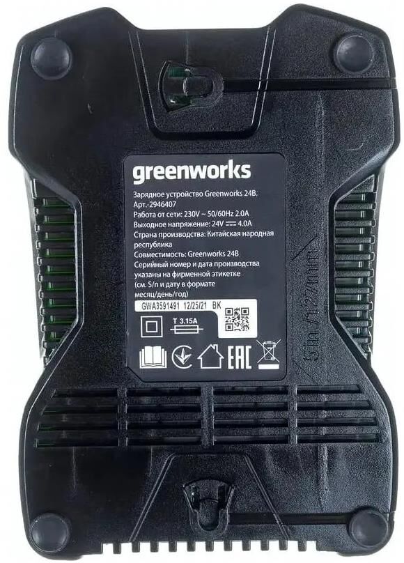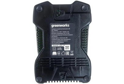Тип заряжаемого аккумулятора: Li-Ion. Назначение: заряжает 2 Ач и 4 Ач аккумуляторы серии Greenworks 24V. Вес: 570. Индикатор уровня заряда: ДА. Время заряда: 2 Ач - 45 мин. 4 Ач - 90 мин.. Крепление на стену: ДА. Габариты упаковки (ед) ДхШхВ: 0.126x0.095x0.18. Вес упаковки (ед): 4. Страна производства: Китай. Гарантия: 36 мес.. Напряжение заряда: - 24 В. Время заряда: 2 Ач - 45 мин. 4 Ач - 90 мин. Особенности: индикатор уровня заряда, крепление на стену. Тип заряжаемого аккумулятора: Li-Ion. Напряжение заряда: - 24 В. Назначение: заряжает 2 Ач и 4 Ач аккумуляторы серии Greenworks 24V. Вес: 570 грамм