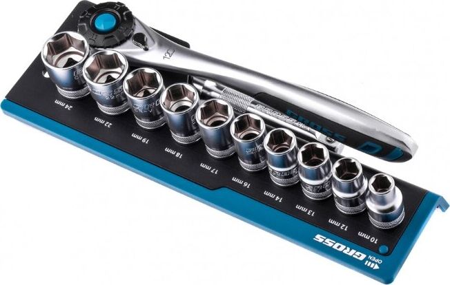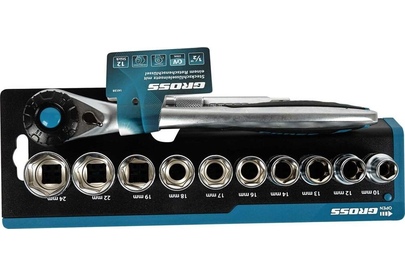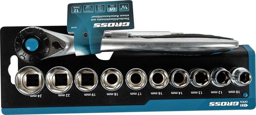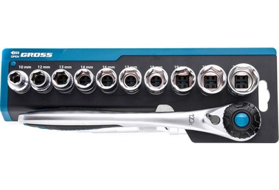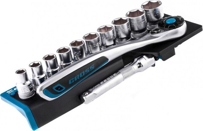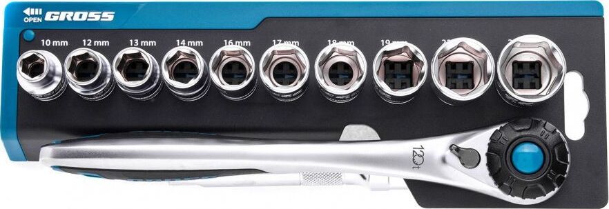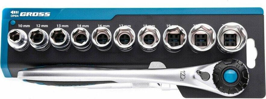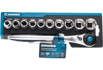 GROSS Набор торцевых головок, трещотка 120 зубьев, 12 предметов, 1/2", CrV 14138