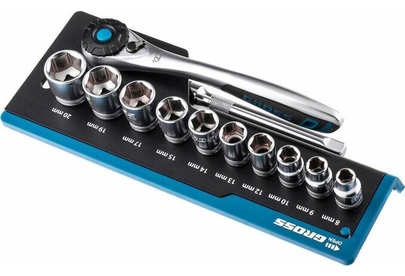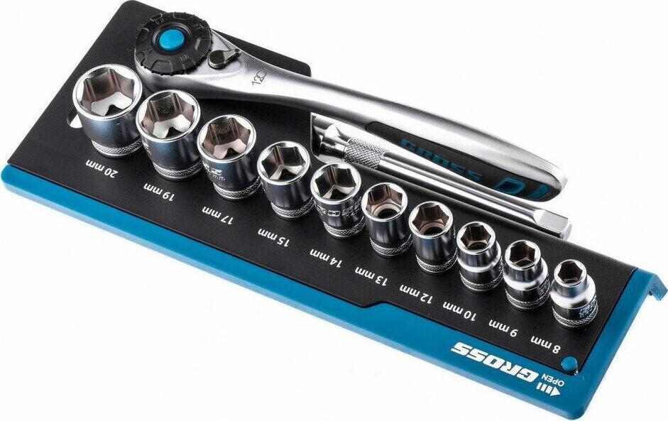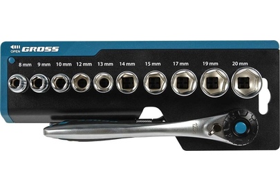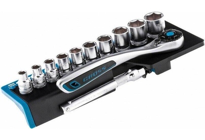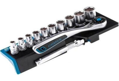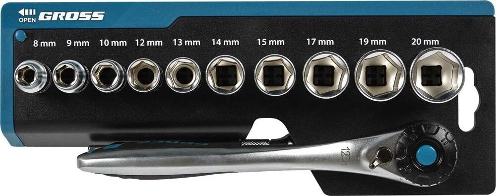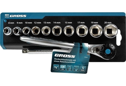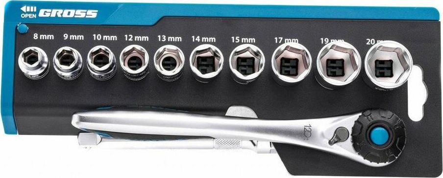 GROSS Набор торцевых головок, трещотка 120 зубьев, 3/8", CrV, 12 предметов 14139