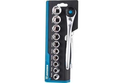 Набор Gross 14139 включает в себя 12 предметов из стали CrV-группы с посадочным квадратом 3/8 дюйма: 10 торцевых головок, трещотку со 120 зубьями и удлинитель 100 мм. Применяется для монтажа и демонтажа резьбовых соединений при проведении технического обслуживания авто или для бытовых ремонтных работ. Набор подходит не только для самостоятельного использования в гараже и дома, но и для профессиональной эксплуатации на станциях техобслуживания.ПреимуществаПрочность и высокий ресурс — инструменты выполнены из качественной стали хромованадиевой группы.Удобная работа в труднодоступных местах — цельнокованная трещотка со 120 зубьями позволяет вращать крепеж максимально плавно и мягко.Функция быстрого сброса — снять оснастку с трещотки можно одним движением.Наличие реверса — можно быстро менять направление вращения трещотки для легкого перехода от монтажа к демонтажу крепежей.Удобное размещение на стенде — набор инструментов комплектуется подвесной картой.