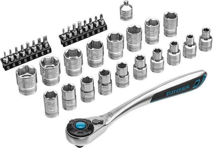 GROSS Набор торцевых головок, трещотка 120 зубьев, 36 предметов, 1/2" CrV 14144