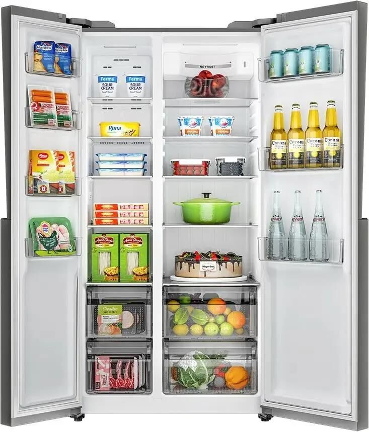 Количество камер: двухкамерный. Расположение морозильной камеры: сбоку. Тип управления: электронное. Класс энергопотребления: A+. Система размораживания: No Frost. Общий объем холодильника: 507. Общий объем холодильной камеры: 334. Общий объем морозильной камеры: 173. Уровень шума: 38. Количество компрессоров: один. Хранение при отключении питания: 21. Мощность замораживания: 10. Количество полок: 5. Количество ящиков: 2. Материал полок: закаленное стекло. Количество полок: 5. Система размораживания: No Frost. Тип: Холодильник. Хладагент: R600a. Количество ящиков: 2. Вес (нетто): 98. Количество дверей: 2. Тип компрессора: инверторный. Габариты упаковки (ед) ДхШхВ: 0.975x0.715x1.895. Вес упаковки (ед): 108. Страна производства: Российская Федерация. Инверторный компрессор: есть. Количество полок на дверце: 3. Материал дверей: металл. Наличие морозильной камеры: есть. Технология автоматического размораживания морозильной камеры: Full No Frost. Технология многопоточного охлаждения: Multi Air Flow. Тип дисплея: в
