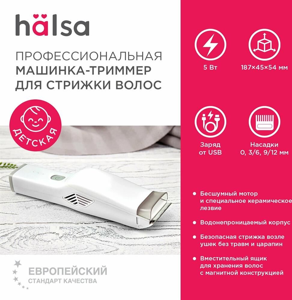 HALSA Машинка для стрижки волос детская, белая