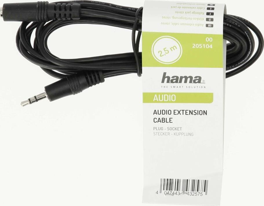 HAMA Адаптер аудио H-205104, Jack 3.5 (m) - Jack 3.5 (f), 2.5м, черный [00205104]