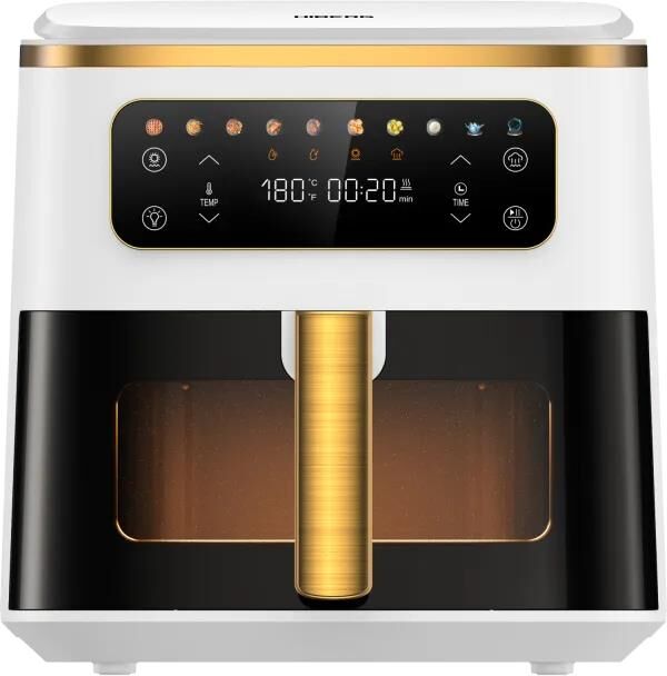 Аэрогриль с пароваркой, Объем: 7 л, Управление: сенсорное, 10 автоматических программ, приготовление на пару, Подсветка содержимого чаши , Антипригарное керамическое покрытие чаши, Резервуар: 1,1 л. Мощность: 1700 Вт. Цвет-Белый с золотом