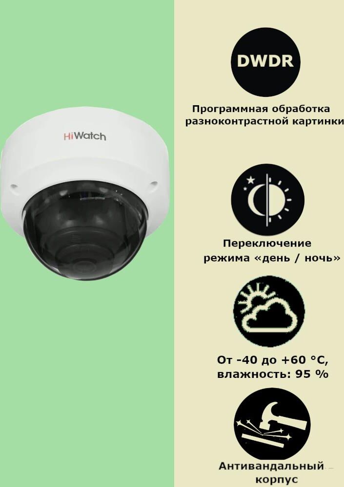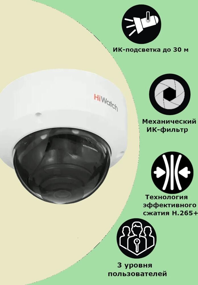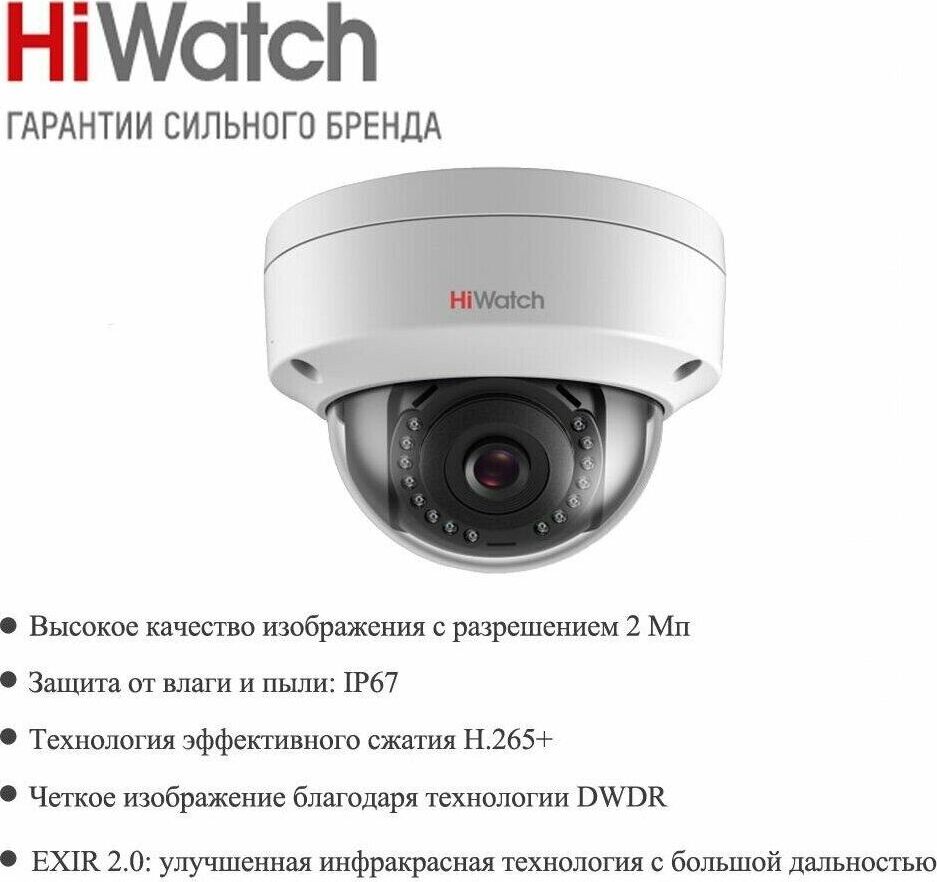 2Мп уличная купольная мини IP-камера с EXIR-подсветкой до 30м• Высокое качество изображения с разрешением 2 Мп • Технология эффективного сжатия H.265+ • Четкое изображение при яркой задней засветке благодаря технологии DWDR • Защита от влаги и пыли (IP67) и антивандальная защита (IK10) • EXIR 2.0: улучшенная инфракрасная технология с большой дальностью ИК-подсветки • Встроенный слот для microSD/SDHC/SDXC: нет • Встроенный микрофон: нет Камера Матрица 1/2.7? Progressive Scan CMOS Чувствительность Цвет: 0