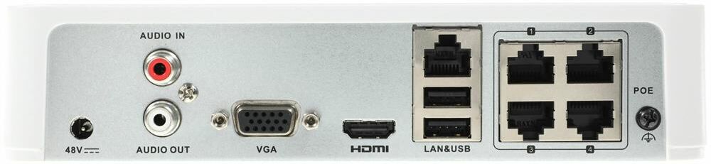 4-х канальный IP-регистратор c 4-мя PoE интерфейсами? Видеосжатие H.265+/H.265/H.264+/H.264 ? Входная пропускная способность до 40/ 60 Мбит/с, выходная пропускная способность до 60 Мбит/с ? Сетевое подключение-видеовходы: до 4/ 8 каналов ? Возможность декодирования до 4 каналов 1080p ? Одновременный вывод HDMI/VGA Видео и аудио IP-видеовход 4 каналаРазрешение до 4 Мп Входная пропускная способность 40 Мбит/с Выходная пропускная способность 60 Мбит/с HDMI-выход 1 канал, 1920 ? 1080p/60 Гц, 1280 ? 1024