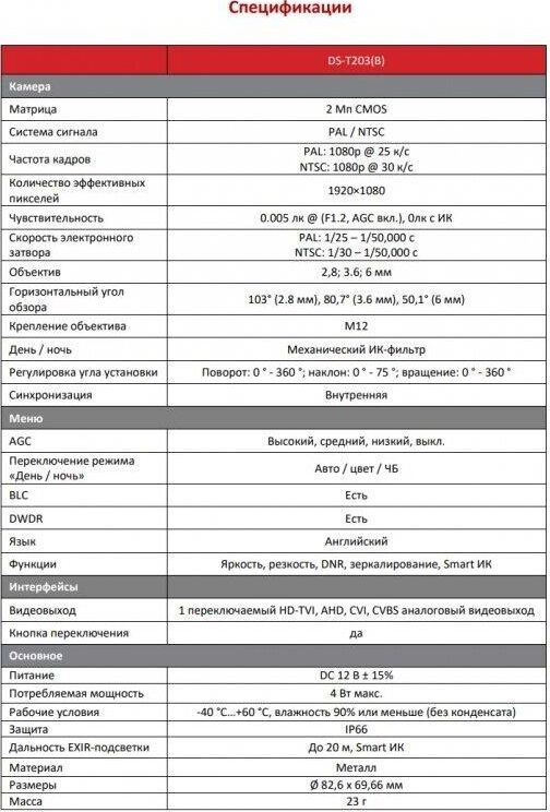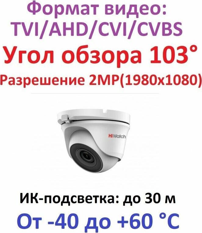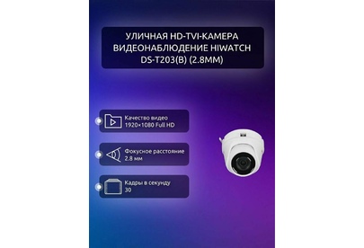 [Видеонаблюдение] HiWatch DS-T203(B) 2.8-2.8мм Камера видеонаблюдения HD-CVI HD-TVI цветная корп.:белый