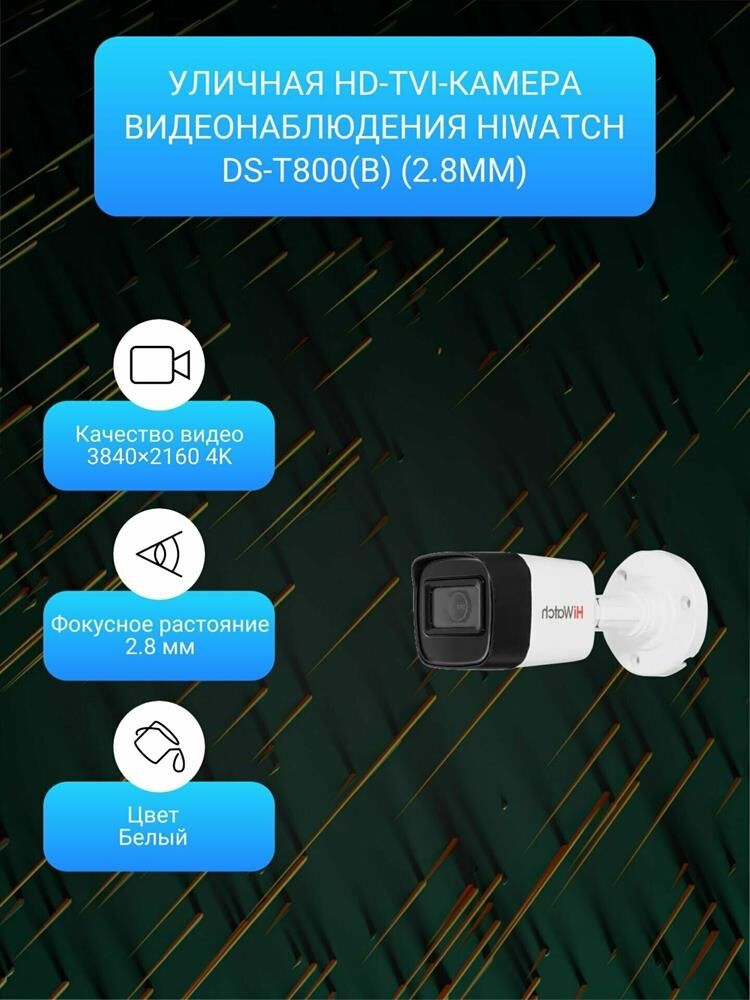 HiWatch DS-T800(B) (2.8 mm) 2.8 мм, Камера видеонаблюдения аналоговая белый