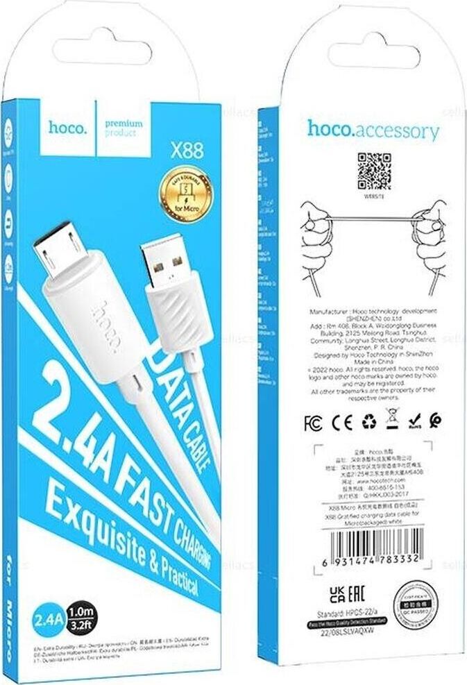HOCO (6931474783332) X88 Gratified MicroUSB (m) 1m - белый